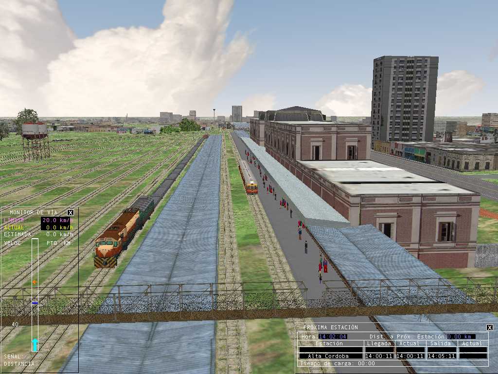 En el indicador correspondiente a los horarios (yo lo tengo en castellano) que dice PROXIMA ESTACION, vamos a ver que arriba de todo dice "Hora". Allí se consigna la hora que muestra el Editor de actividades, en este caso 14.00, pero si nos remitimos a lo indicado más abajo donde se lee: Llegada - Actual - Salida - Actual , el horario varía. Este es el horario que SIEMPRE debemos observar. Para este caso especial las 14.06 ó 05, no recuerdo en este momento. Esto sucede por la cantidad de viajeros que abordan el tren en esa estación en particular cuya cantidad podemos determinar nosotros también. Por ejemplo, para este tren que parte de Alta Córdoba la cantidad de pasajeros a subir pueden ser 40, 50, o más.