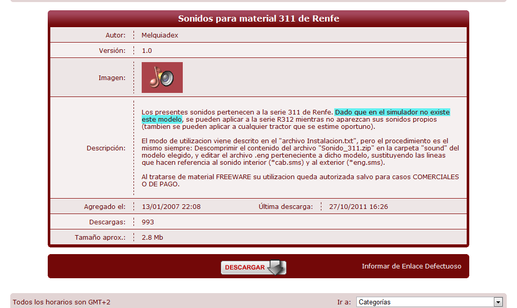 Hola a todos mirando en la pagina de descargas de sonido he visto unos que pone "sonidos para 311" y me he puesto a buscarla por la web,pero no lo encuentro.