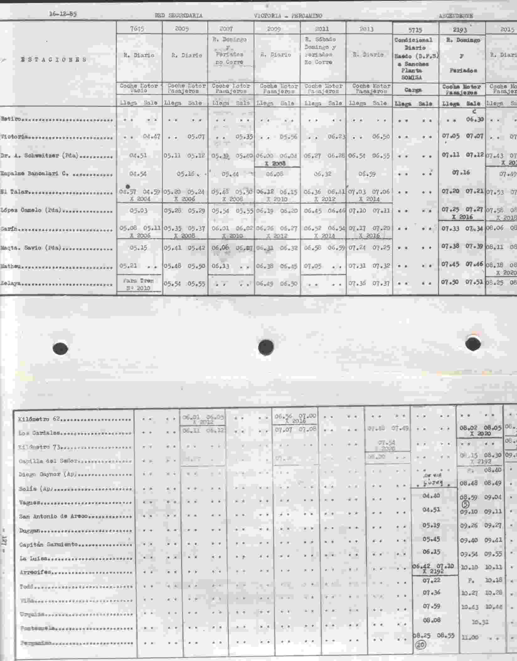 El que procedía de Venado Tuerto salía de esta estación a las 3.20 de la mañana diariamente y el que terminaba en Pergamino corría solamente los domingos y días feriados.