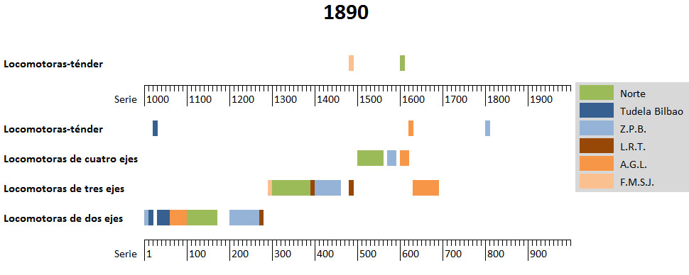 - Numeró del 101 al 170 las 69 locomotoras 120 (se dejó sin usar el número 158).