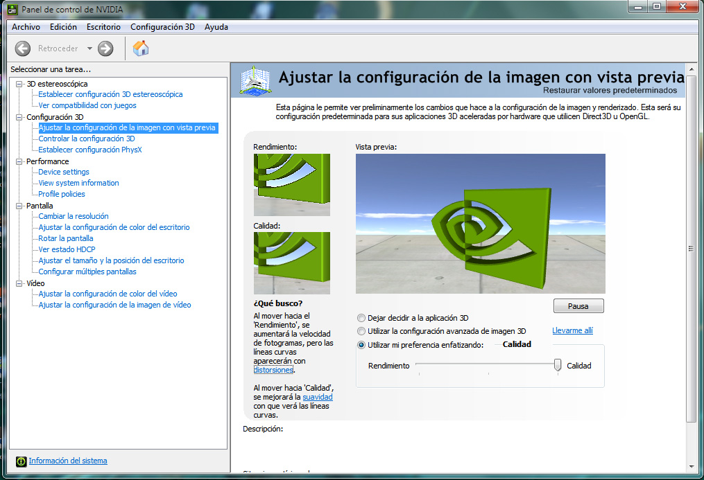 Por cierto, el tema de la calidad, donde se cambia...no veo nada explicito en el panel de control nvidia.