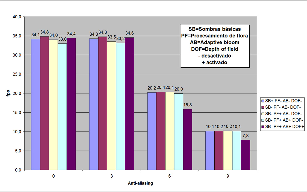 Es una constatación. Una pregunta: a 800x600, anti-aliasing a 0 y calidad media, ¿cuántos pfs consigue tu sistema?