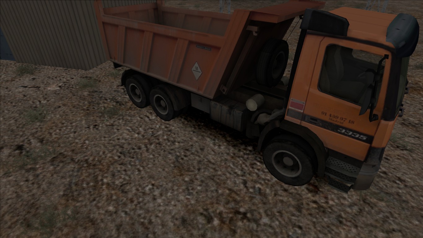 Volquete Mercedes matrícula de Madrid. Hasta se puede ver el teléfono