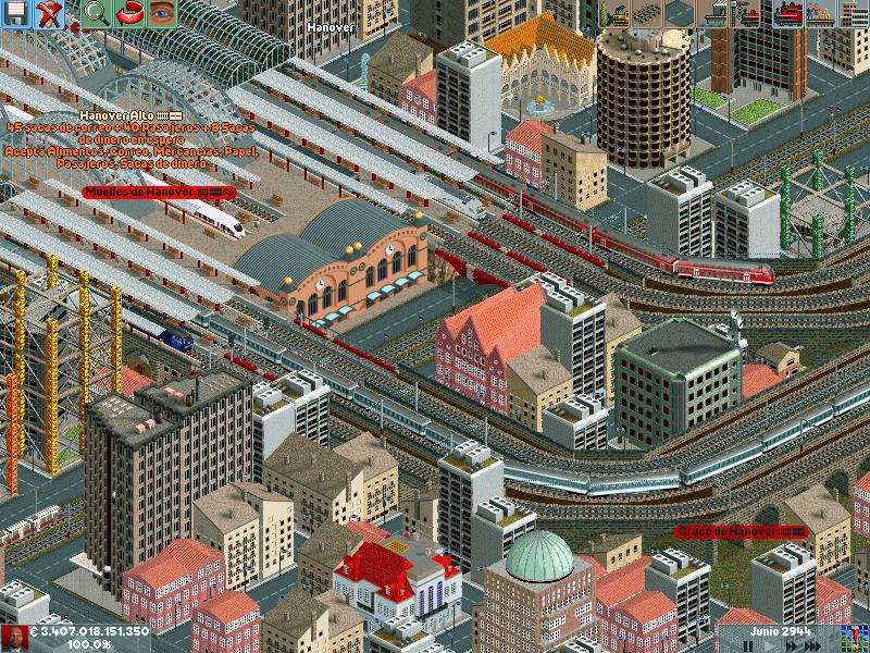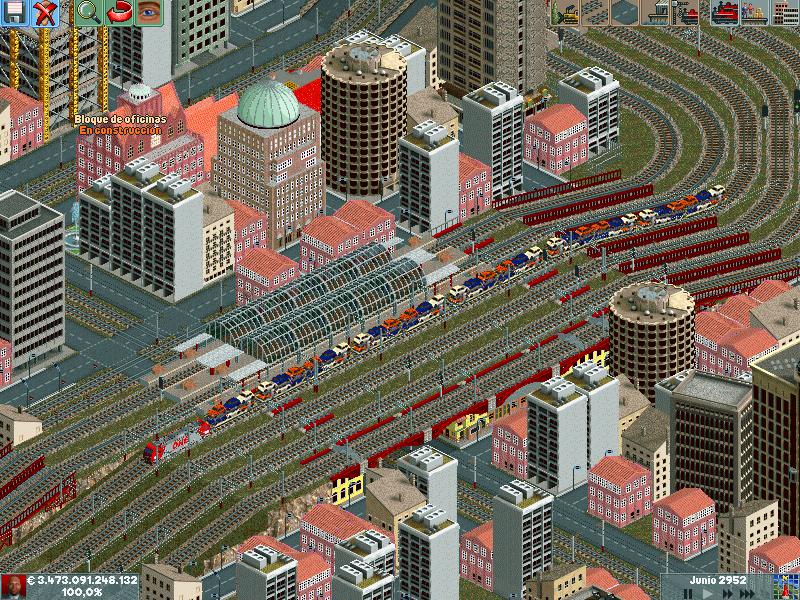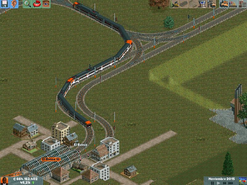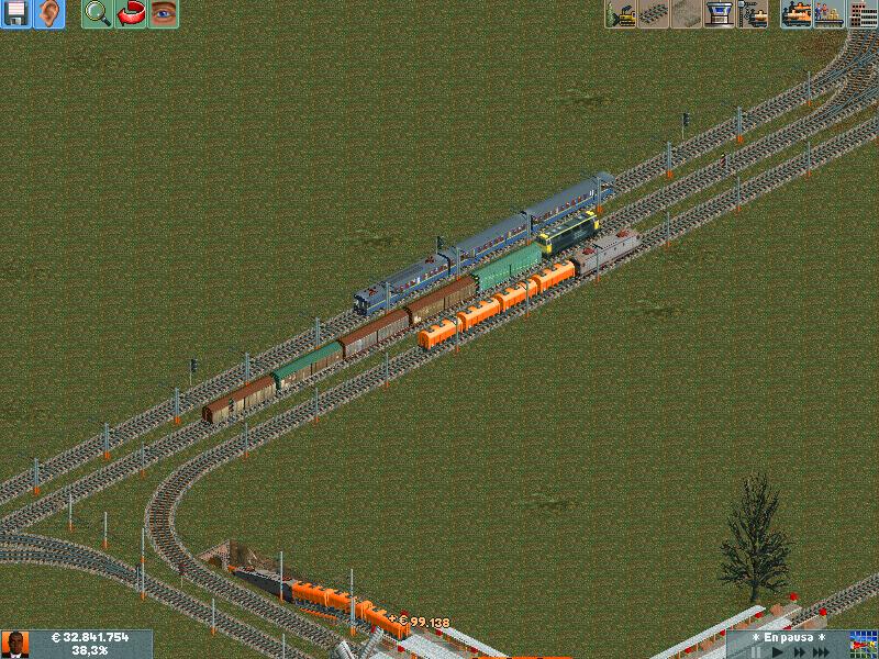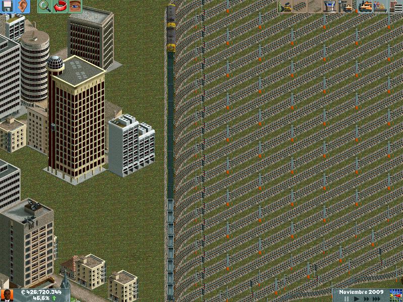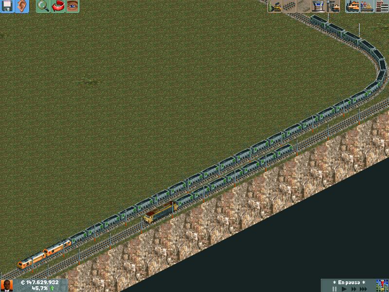 En mis redes procuro separar los trenes por velocidad, ya sea pasajeros o mercancías. Después de muuuuchas horas he conseguido dominar la IA del juego y rara es la vez que algún elemento se me despista (generalmente en obras...)--truco: hacer todo lo que se pueda en ro-ro!. Dejo unas poquitas fotos