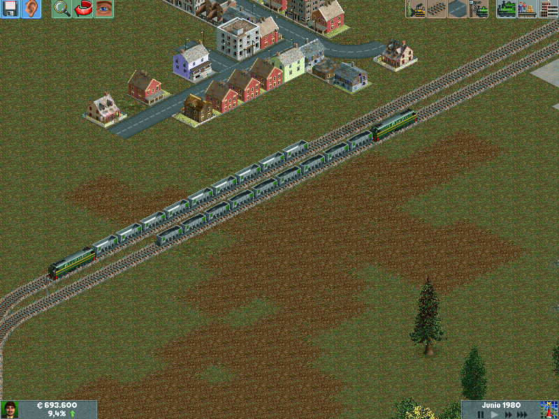 Os explico, me he creado un mapa totalmente llano, con muchas industrias. Para ver hasta donde podría llegar y a cuantos trenes podría hacer jaja. Lo empece en el año 1995 justo, con ciudades pequeñas apenas de 500 habitantes. Ahorra llevan algunas mas de 60.000 habitantes, y lógicamente las estoy encerrando para que no crezcan porque madre mía. Llevo unos 130 trenes, 14 aviones y unos 20 tranvías.