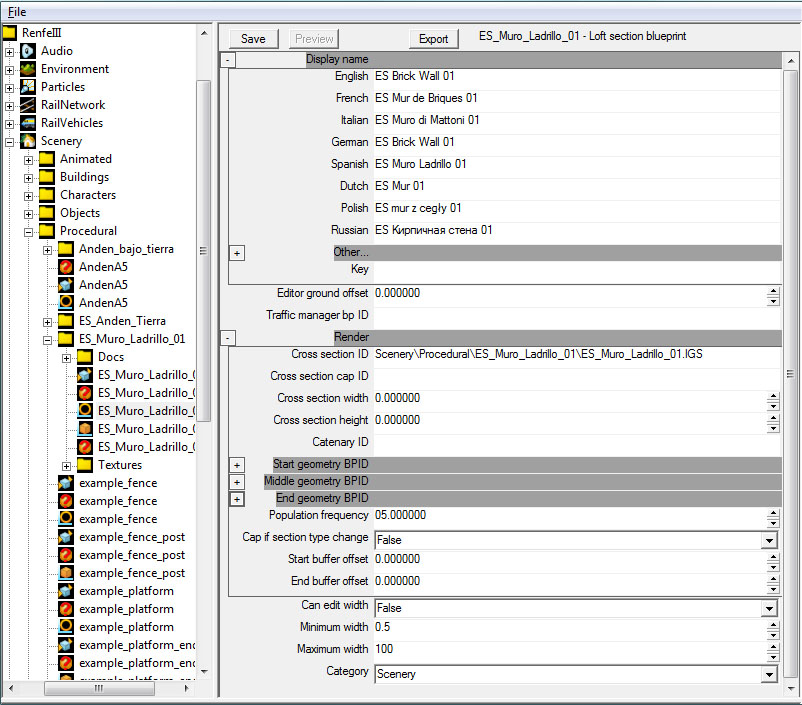 Le daremos nombre estándar de RW, por ejemplo: "1_1250_Muro". El nombre seguirá las convenciones generales de nombres para RW.