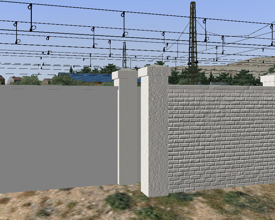 - Para enrasarlo respecto al suelo. En realidad quien debe estar enrasado con el suelo es el pivote del objeto, pudiendo estar el objeto por encima (una catenaria por ejemplo) o por debajo (en el caso que quisiéramos alargar nuestro muro bajo tierra y así, en terrenos irregulares, evitar que el muro "levite" en algún tramo).