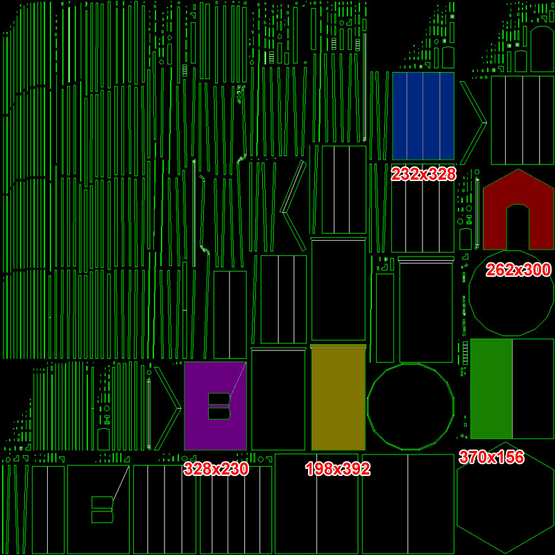 Para el segundo crearemos un archivo de 512x256 píxeles (512 de ancho y 256 de alto). En él copiaremos en la parte alta una hilera de bloques de la textura de bloques de piedra, que deberá ocupar el 10% de la hoja de textura en altura (26 píxeles) y todo el ancho. El resto, la zona inferior de 512x230, la ocupará la textura de ladrillos.