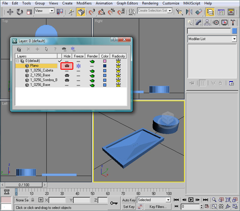 - Pulsamos el botón Affect Pivot Only para asegurarnos que desplazaremos únicamente el pivote del objeto, dejando éste tal como está.