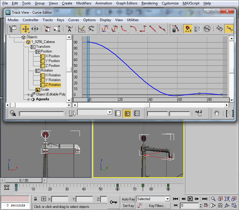Importante:El conjunto lo deberemos rotar 90º, pues los objetos procedurales toman la repetición de la textura, a lo largo del elemento generado, en el eje Y de la misma (norte-sur).