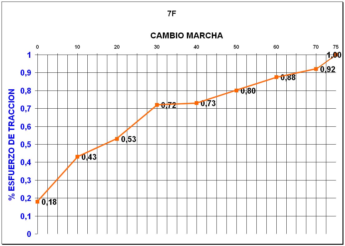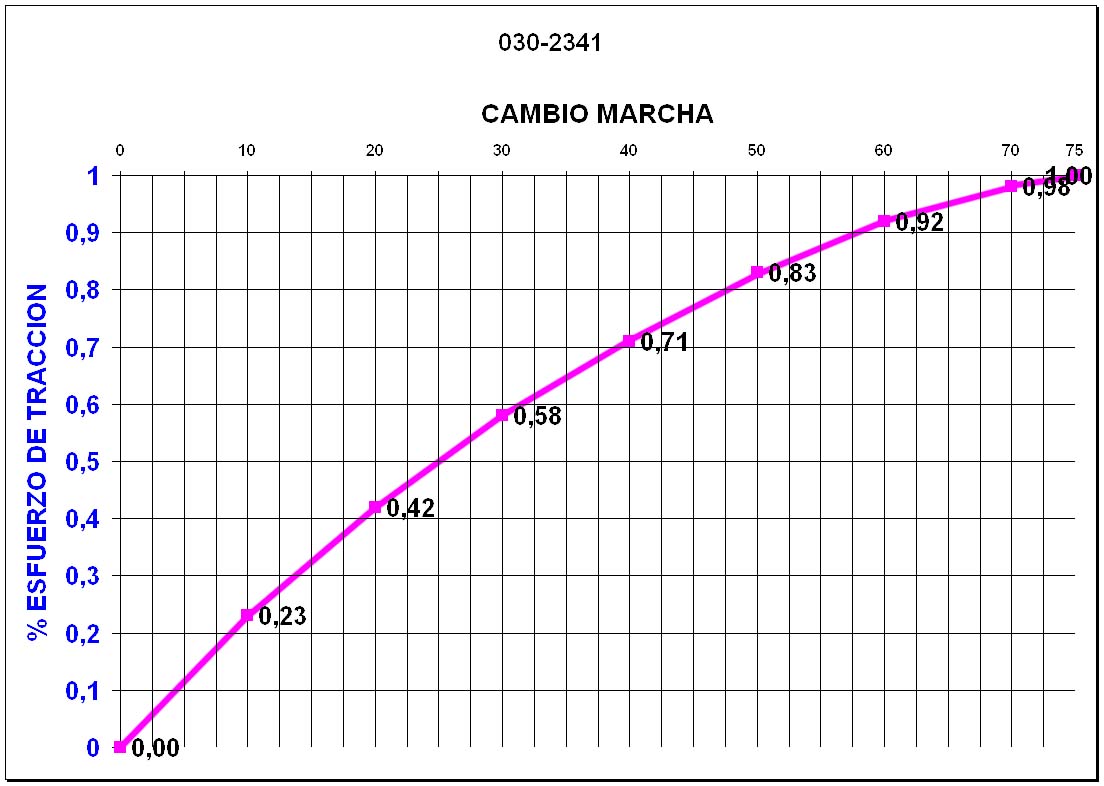 En diesel y eléctricas el valor máximo de las curvas es el mismo de la Max Force, es decir el esfuerzo de tracción máximo, pero en kN, hay que dividir la MF que tenemos en klbf entre 225 para obtener el valor en kN, o lo que es lo mismo ET = MF (en klbf) /225. Si partimos de kilogramos ET = MF (en kg) x 9,8 / 1000.