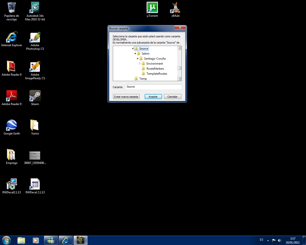 Sé que soy un cansino, pero ya no sé qué hacer :oops: : He visionado un vídeo de RWDecal en YouTube sobre la instalación y configuración. He ejecutado el programa como administrador, pero me sigue dando error... En cuanto a las direcciones: En Developer he puesto el directorio Sekim y en Product he puesto Santiago-Coruña. En el momento que acepto esta última como carpeta, me salta el error. Adjunto captura de pantalla con la estructura de carpetas.