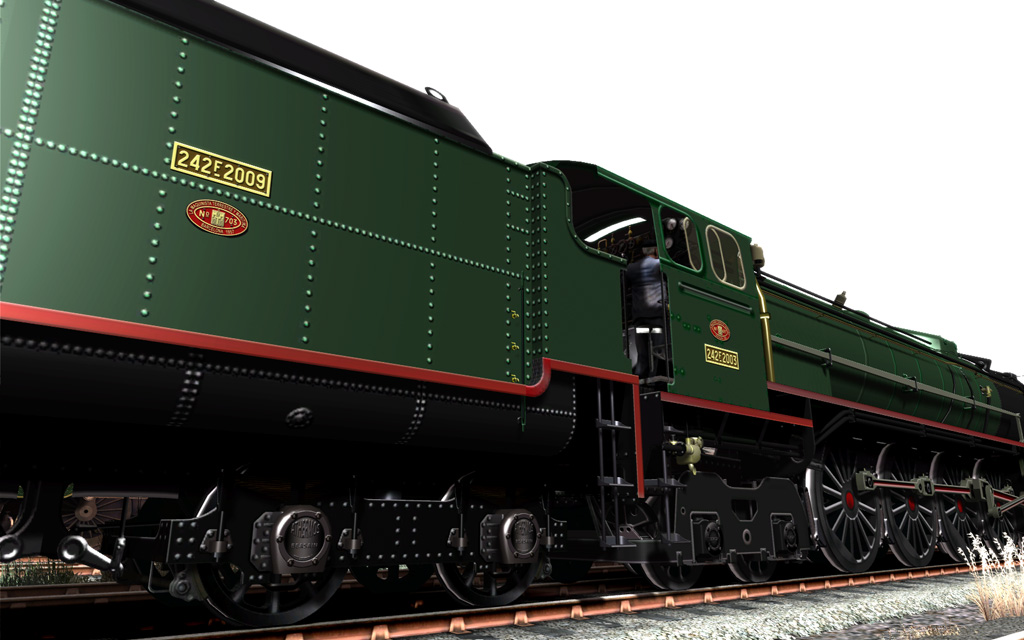 Auque no puedo acceder a conducir la locomotora en RW3 (los expertos ya trabajarán el motivo), sí puedo colocarla como estática en RW3. He hecho unas capturas, mostrando que los modelos bien trabajados y con técnicas economizadoras de polígonos, SIEMPRE se mantienen en su esplendor. Es más, su belleza se va manifestando cuanto más bueno sea el motor de render del simulador. Y sin más ajustes que su traspaso a RW, así luce de bonita: