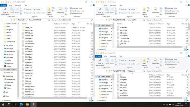 Mr TER, yo tengo, en la misma carpeta del vagón, los .s, .sd y ACE, todos juntos, y me funciona perfectamente. Echa un vistazo al WAG, por si hay algún error. Yo tengo los coches puestos así.