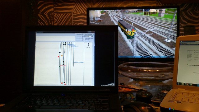 Todas las practicas las hago yo con mi propia maquina, controlando desde el pc las señales y desvios(yo CTC para mi mismo) y a la vez, pruebo la funcionalidad de las mismas,(a traves del TV)