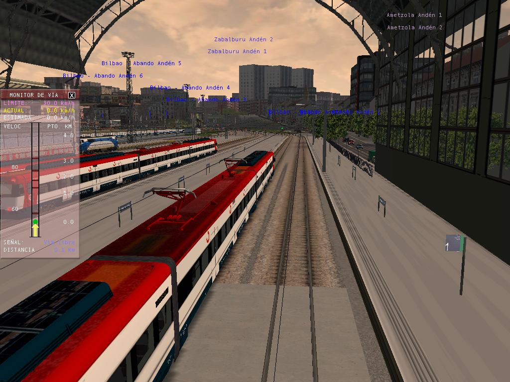 Te digo casi todo porque en la estación de Olabeaga observé que la marquesina del andén se incrusta en los trenes y los coches de la carretera paralela se ven volando desde la cabina de la 447, aunque la carretera está puesta ya que utilicé la vista 2 mientras estaba haciendo la parada.