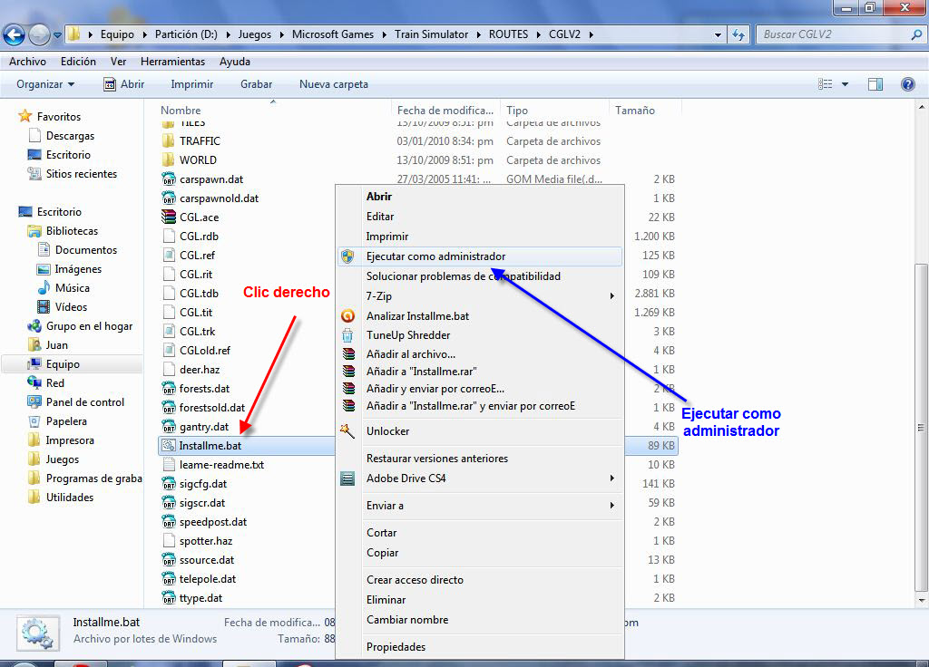 Me estaba ocurriendo lo mismo tanto en Windows 7 Ultimate como en Windows 10 Home en todas mis rutas que necesitan el dichoso "Instalme.bat", así que he tirado por la calle de en medio: De todas las rutas originales, Europe 1 y 2, Japan 1 y 2, Usa 1 y 2 y Tutorial route, he copiado las carpetas EnvFiles, Shapes, TerrTex, Textures y Sound y las pego a cualquier ruta que necesite el "Instalme.bat", y a funcionar.