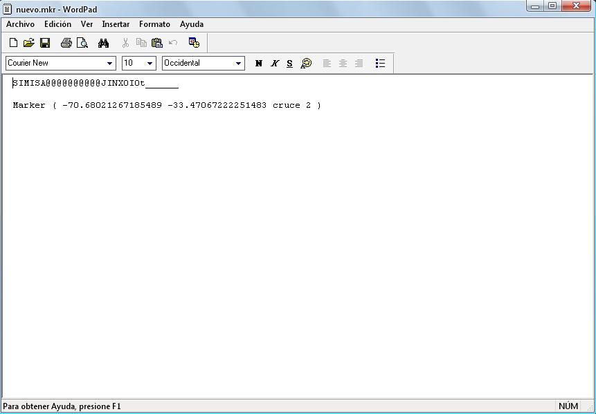 Luego abriendo con el Wordpad, pego el contenido de esos nuevos marcadores dentro del MKR de mi ruta, y listo