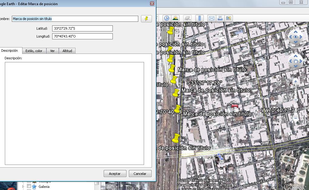 Con el Google Earth, vas pinchando donde van los marcadores,