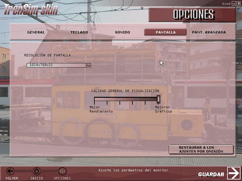 5º. Desactivé todas las opciones y fuí incrementándolas progresivamente y aquí. Al final, todas las barras están al 100% y los cables overheadwire, o algo así, activados. El resto desactivado.