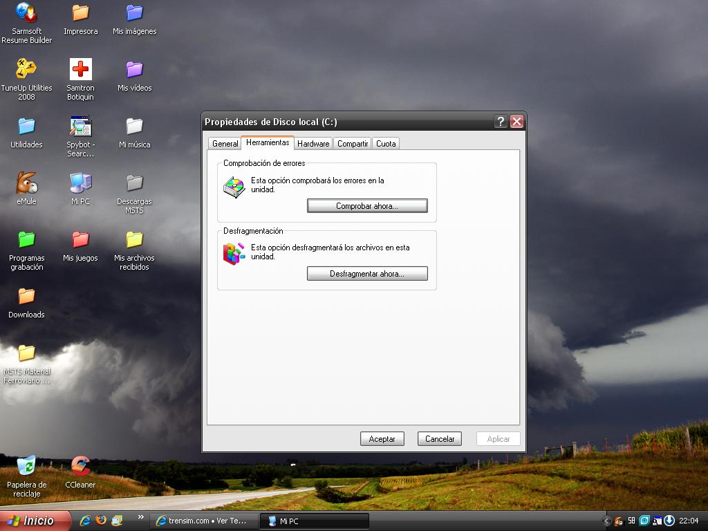 seleccionas las 2 casillas como en la captura y lo más seguro es que te diga que sólo se puede hacer eso cuando reinicies el equipo; pues lo reinicias y entonces empezará a hacer la comprobación de errores. Cuando termine, si te ha solucionado los posibles errores del disco duro, ya podrás desfragmentarlo (por supuesto, para hacer todo esto, no tiene que haber ningún programa funcionando, a ser posible ni el antivirus, tanto para la comprobación de errores, como para la desfragmentación)