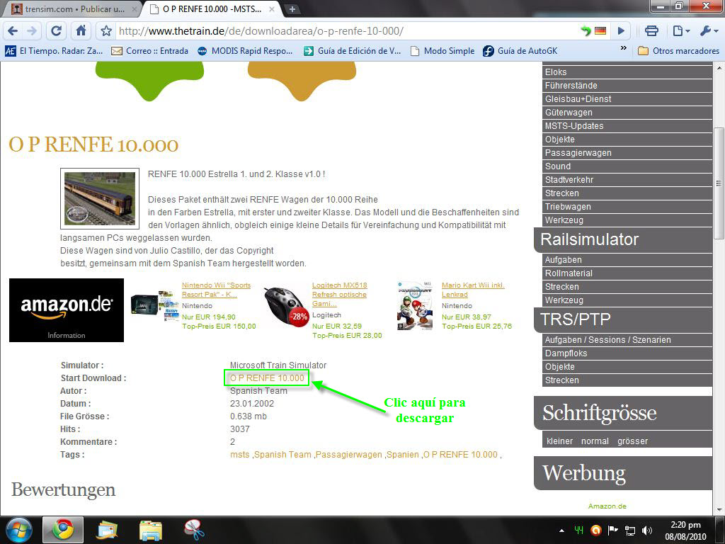 Hola a todos , veran , necesito los coches Renfe 10000 ya que el unico lugar donde los he encontrado es en the-train.de y no los puedo descargar ( ya estoy registrado)...asi que si alguien serian tan amable de inviarlos a "americo.m.m.1995(arroba)gmail.com" se lo agradeceria muchisimo...