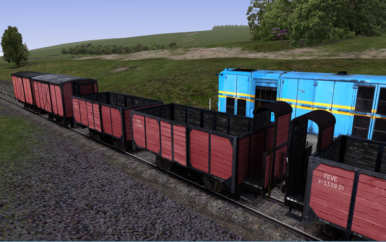 En primer lugar una plataforma de dos ejes, recuperada de un modelo anterior de MSTS/Trainz, un poco trabajados luego. El nivel de detallado no es muy alto y de momento no llevará numeración interactiva, aunque si mejoras en las mallas, render to texture, enganches operativos, carga y sonidos para RW.
