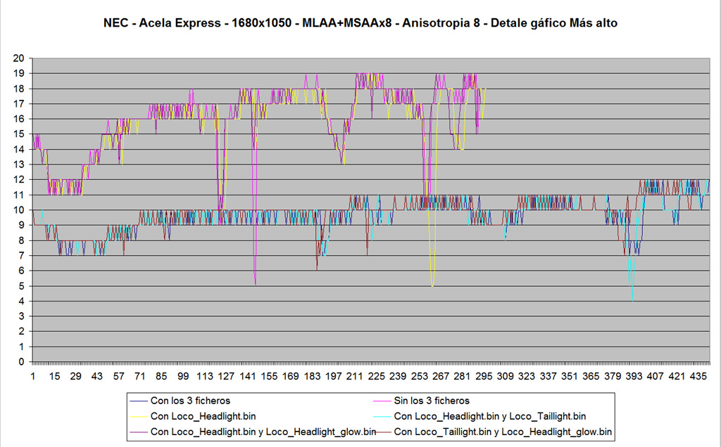 Si alguien de vosotros tiene el Pendolino observarà que requiere más recursos que otro material. El motivo puede ser desde la malla, hasta que exista un gran número de scripts implicados en la simulación de su funcionamiento que se ejecutan de forma concurrente en tractoras y vagones (desde la señalización en cabina, pasando por chispas en el pantógrafo, pendulación, etc etc... la ejecución de scripts no deberia influir en el motor gráfico, pero si en la carga de la CPU, que a su vez depende de otros factores. También podria ser que alguno de los script tuviera alguna función con un bucle descontrolado... por un error en el diseño. En escenarios con poca carga esas cosas no se aprecian; si vamos justos entonces, si.
