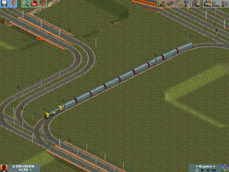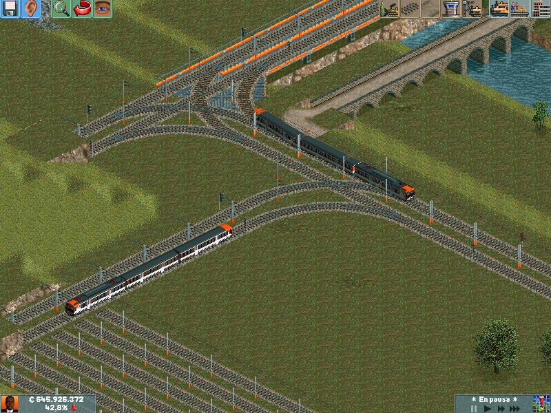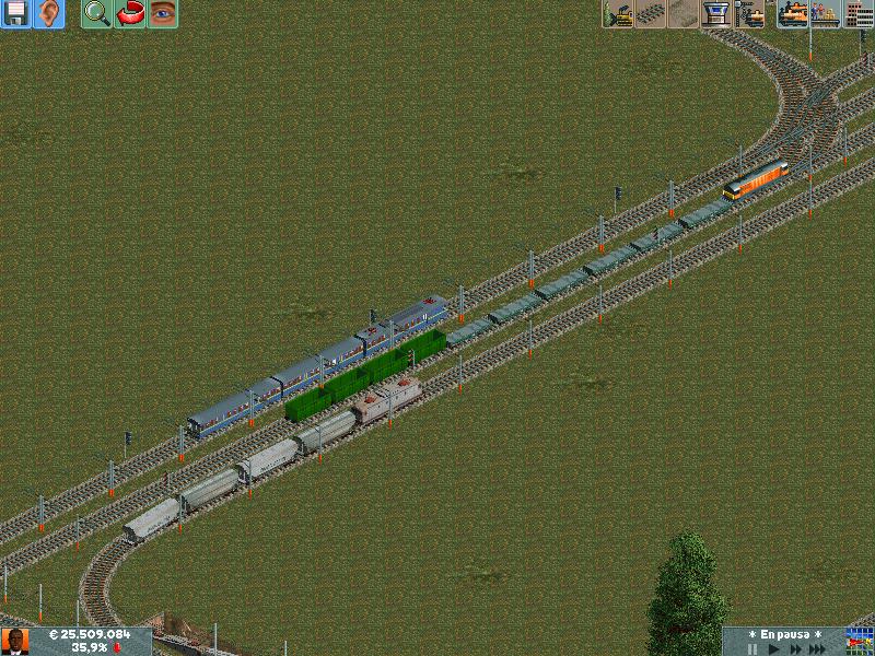 En mis redes procuro separar los trenes por velocidad, ya sea pasajeros o mercancías. Después de muuuuchas horas he conseguido dominar la IA del juego y rara es la vez que algún elemento se me despista (generalmente en obras...)--truco: hacer todo lo que se pueda en ro-ro!. Dejo unas poquitas fotos