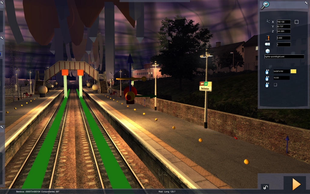 Además, para el personal que tiene instalado el pack de Armstrong Powerhouse de iluminación de estaciones es posible que ciertas estaciones aparezcan con exceso de luz (aunque se supone que el autor de la ruta ha intentado solucionar esto). Esto se debe a que AP hizo las luces como "hijos" de los assets originales. Ello implica que usar determinados assets que vienen por defecto con el simulador en otras rutas hace que aparezcan la luces también (quieras o no), así que: luces de AP + las que ha puesto el autor de la ruta = gafas de sol 8) .