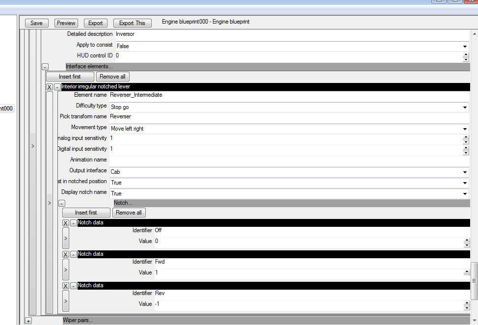 No es difícil tampoco modificar con RW Tools el 'blueprint' de una locomotora para que nos salgan las posiciones del regulador en vez de un porcentaje. Este es el código que he usado para poner nombres a las muescas de la GP-38 de J. Cornell. Aquí os dejo el componente 'InterfaceElements':