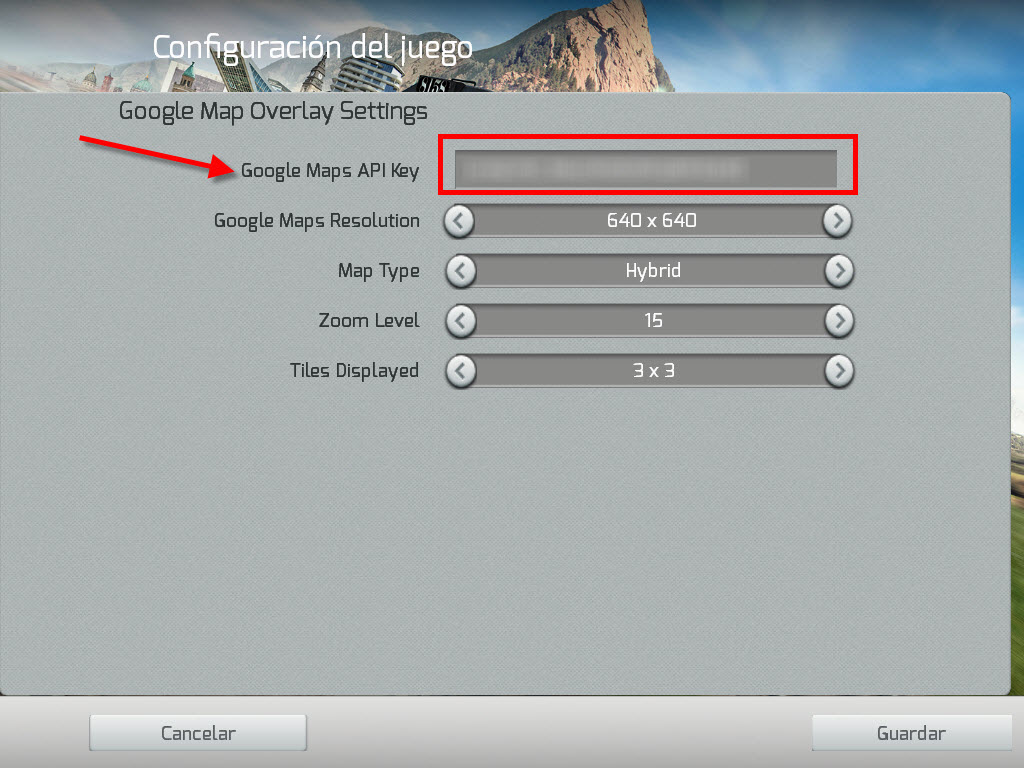 Inicia TS2014 y ve a "Configuración", después clica en "Gráficos". A partir de aquí ve a la nueva pantalla de configuración clicando en "Google Map Overlay".