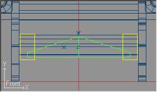 + | Una vez situada la pieza pasaremos a modo de edición de puntos con '''Mode » Point''' (o bien pulsando la tecla [F8]), entraremos en modo selección por ratón con '''Mode » Select''' (o pulsando la tecla [F11]) e iremos seleccionando las parejas de puntos de cada sección vertical, para moverlas en el eje Z hasta las posiciones aproximadas que se ven en la imagen siguiente: | ||