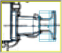 Observamos en el plano que esta pieza tiene una forma ahusada hacia el extremo anterior, reduciendo su diámetro. Para darle esta forma, pasaremos a Cross Section Mode con Mode » Cross Section (o pulsando la tecla [F9]) y seleccionaremos la sección anterior pulsando repetidamente la tecla [N] hasta situarnos en ella. Ahora reduciremos el diámetro de esta sección mediante Transform » Scale Mode (o pulsando la tecla [S]) y arrastrando con el ratón (comprobar que no se tiene restringida la transformación para ningún eje):
