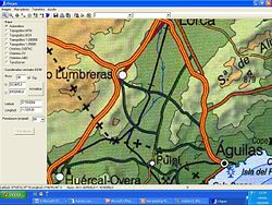 De momento nos quedamos en 2,5 m/pixel. Sabemos que Almendricos está en el km 23.702,70 de la línea de Lorca a Baza y en el 0.000,00 del ramal de Almendricos a Águilas. Está situada en una recta de 1.283 m y en una rasante de 2.300 m de aquella línea. Lo cual son datos bastantes alentadores para un comienzo, dados su sencillez. Podemos comprobar la longitud de esa recta en la barra de estado de nuestro vSigpac.