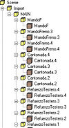 Esta nueva jerarquÃa tiene muchos menos grupos (son los elementos que más comen recursos en el Rail Simulator), y estos están agrupados según nuestra conveniencia para establecer los LODs del objeto. Las piezas que siempre estarán a la vista (caja, techo, etc) están directamente bajo el grupo Import que define el vagón, o sea, estarán sujetas a la distanciade visión del propio vagón. El resto de piezas están bajo diferentes grupos.