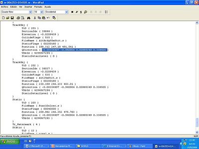Vamos a la carpeta WORLD y buscamos el archivo correspondiente a esa baldosa que sería la w-006353+014181.w. Mediante el buscador localizamos ese tramo A1tBrdg50mStrt.s y copiamos su orientación (QDirection), marcando lo que hay entre el paréntesis y copiando.