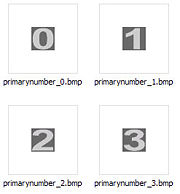 Necesitaremos también un juego de texturas denominadas primarynumber_##.bmp donde ## indica un número de orden de un dÃgito de la matrÃcula.Estos archivos se usarán para texturar los polÃgonos que recibirán los números dinámicos de la matrÃcula, y su contenido es intrascendente, pero su nombre determina cual de los caracteres de la matrÃcula se ubicará en cada uno de dichos polÃgonos.